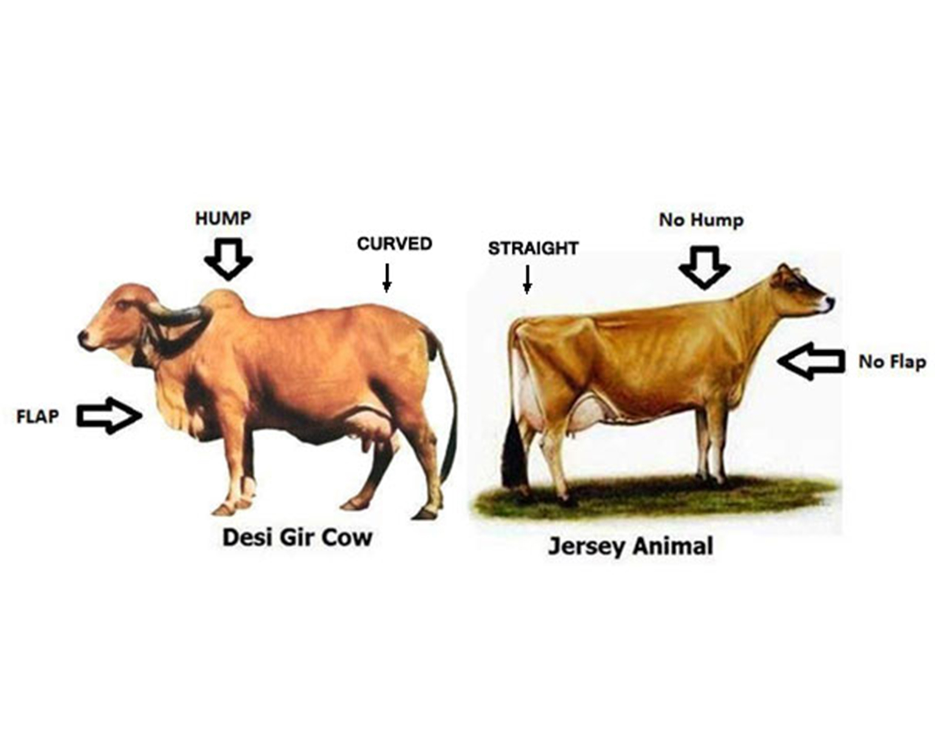 Majority of milk which is available in the market is A1 type (got from Jersey or Holstein Fresian breed of cows). Many studies have shown that, A1 milk is associated with adverse health effects. Jersey cow is not actually a cow, its a hybrid and look like a cow. the main difference is in appearance and quality and quantity of milk, Indian cow milk has the healing and healthy properties while jersey cow milk is very dangerous as it causes many different diseases30% of the Protein in cow’s milk is Beta-Casein. Beta- Casein may be either A1 or A2. A2 Beta-Casein naturally supports digestive well-being which is available only from the native cows.